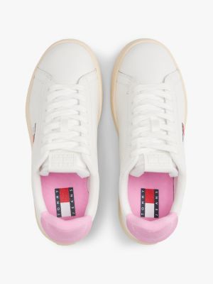 These leather trainers embrace retro aesthetics, with their classic court silhouette and instantly recognisable Tommy badge adorning the tongue, side and heel.