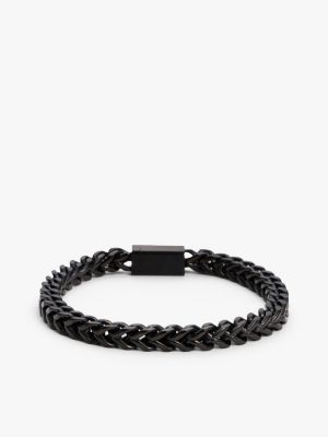 Make a statement with this black-tone stainless steel bracelet, intricately crafted into a braided chain design and finished with a classic flag.