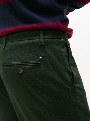 These chinos feature a structured fabric with the illusion of texture for a refined look, adorned with subtle signature detail.