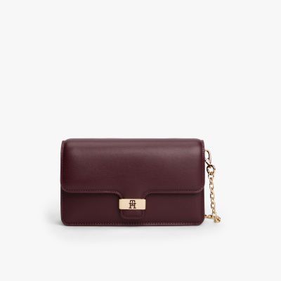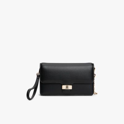 This versatile clutch is perfect for evenings out, with a foldaway chain strap and luxe TH monogram branding.