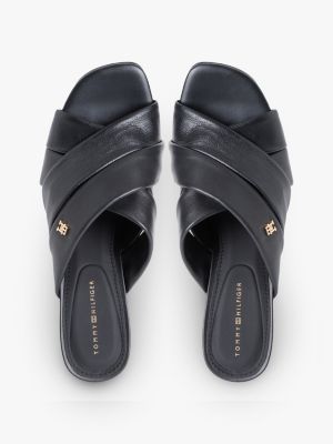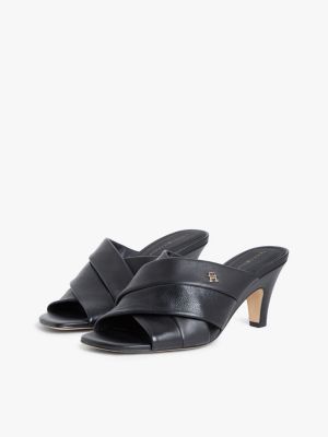 Slip seamlessly from day to night in these heeled mules, crafted from luxe leather and finished with a polished TH monogram plaque.