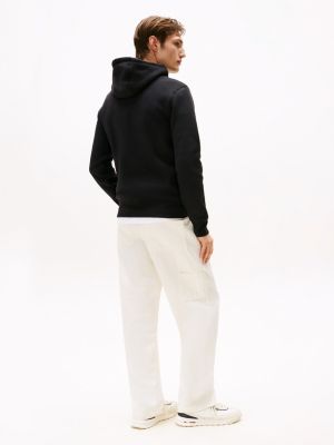 A regular-fit silhouette ensures laid-back comfort while maintaining a clean, structured look, ideal for layering over tees or under jackets. The premium cotton-blend flex fleece feels exceptionally soft against the skin, offering warmth without excess weight – perfect for year-round wear. Having an adjustable drawstring hood adds practical adaptability to suit changing conditions, while the rib-knit cuffs and hem keep the fit snug and refined. Finished with finely embroidered Tommy Hilfiger branding on the chest and a flag on the cuff, the hoody delivers authentic heritage style that elevates everyday dressing. A spacious kangaroo pocket rounds out its design, blending function and casual utility.