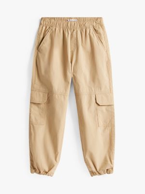 These loose pure cotton trousers are a comfy pick for easy-going days, featuring an elasticated waist and practical cargo pockets.