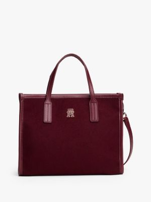Add a chic touch to outfits with this refined tote, featuring shimmering metallic details and a detachable TH crest bag charm.