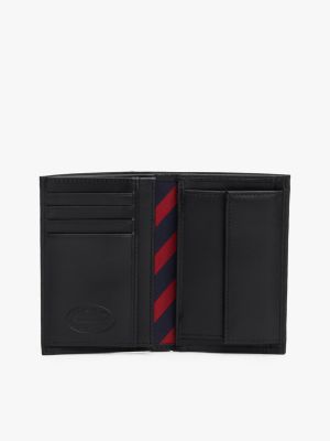 Keep notes and coins secure in this refined trifold leather wallet, featuring a vibrant signature stripe lining and an internal mesh pocket.