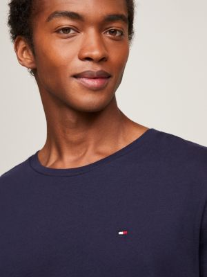 Pure cotton jersey combines gentle softness with natural breathability, making this T-shirt a great addition to your transeasonal essentials. The fit creates a contemporary silhouette that's equally suited to layering under shirts and knitwear as it is standing strong on its own. Tommy Hilfiger's signature flag embroidery sits on the chest, signalling its elevated sporting heritage, while remaining discreet enough for smart-casual dress codes. This T-shirt is crafted with comfort and longevity in mind, and so showcases the best of modern, easy style. Take the reinforced classic crew neck, which is designed to retain its shape through many washes and wears, so you'll always look polished when you pull it on.