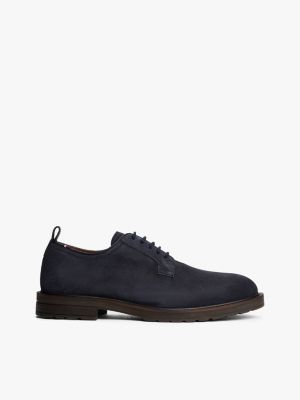 These suede Derby shoes offer a modern twist on the classic style, featuring signature branding and cleated soles.