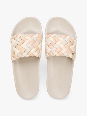 Embrace style and comfort with these pool slides, which combine contoured footbeds with refined braided straps embellished with metallic TH monogram branding.