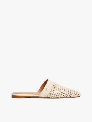 These elegant mules feature an eye-catching crochet design and are accented with a metallic woven trim for subtle everyday sparkle.