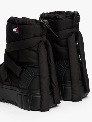 Be ready for the slopes with these statement hybrid snow boots, featuring striking crossover straps and chunky cleated soles.
