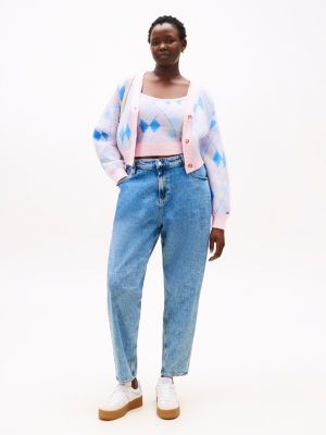 Elevate your denim game with women's Mom jeans by Tommy Hilfiger, the epitome of timeless style. Mom jeans offer a relaxed, vintage-inspired fit with a high rise and straight leg, reminiscent of the classic '90s era. These jeans sit comfortably at the natural waistline, providing a flattering silhouette for every body shape. For a timeless and chic ensemble, opt for high-waisted Mom jeans, designed to accentuate the waistline and elongate the legs. Pair them with a tucked-in blouse and heels for a sophisticated yet casual look. Take your style to new heights with ultra-high rise Mom jeans, offering additional coverage and support around the waist. Style them with a cropped sweatshirt and loafers for a modern twist on a retro-inspired outfit. For an edgy vibe, try ripped Mom jeans featuring distressed details for a worn-in, rebellious look. Team them with a graphic t-shirt and trainers for a casual appearance perfect for weekend adventures. Tommy Hilfiger women's Mom jeans redefine classic denim with their vintage charm and contemporary appeal. Discover your new favourite denim staple and embrace timeless style with every wear.