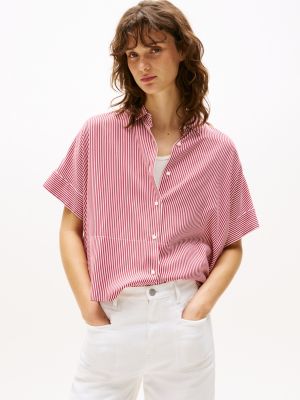 Own your look with a stylish women’s shirt from Tommy Hilfiger. Choose from a wide selection of cuts, lengths and styles, including relaxed and oversized fits. Exude modernity with a soft, stony beige corduroy shirt made from organic cotton, which you can pair with low rise jeans for a casual look. If you want to epitomise a chic urban style, try pairing a relaxed-fit cotton shirt with a pair of suede Chelsea boots.